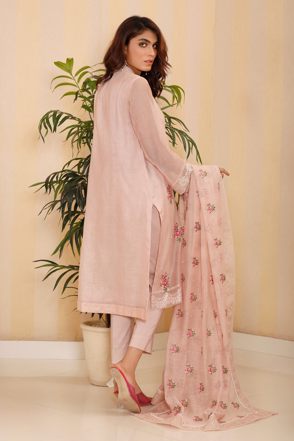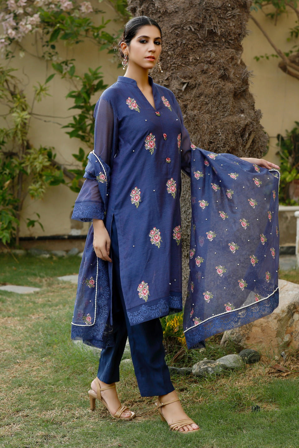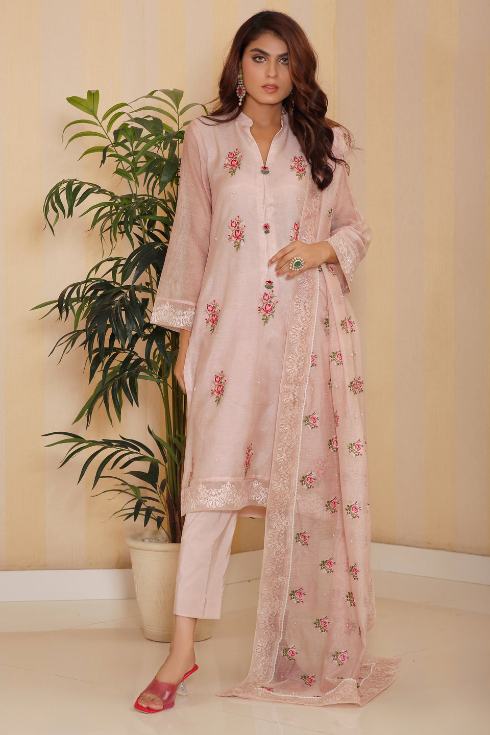 Crafted from Khaddi net, the Miniflora Dupatta features delicate cross stitch motifs & border with pearl chan detail.