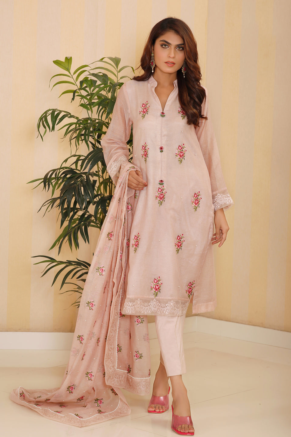 Cut from Khaddi net, the Absolute Rose+ kurti features multicolour cross stitch motifs with a delicately embroidered border on the daman & sleeves with pearl chan & hand-made buttons, making it a versatile classic for your new season wardrobe.