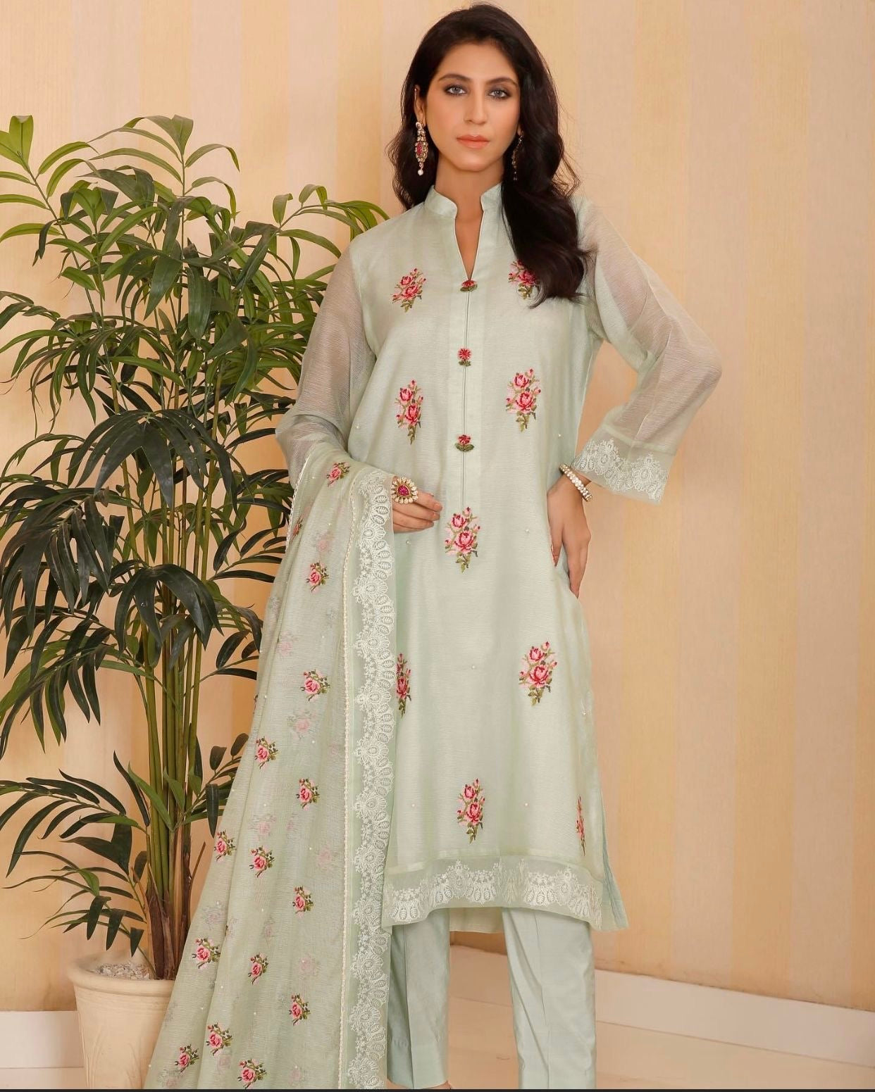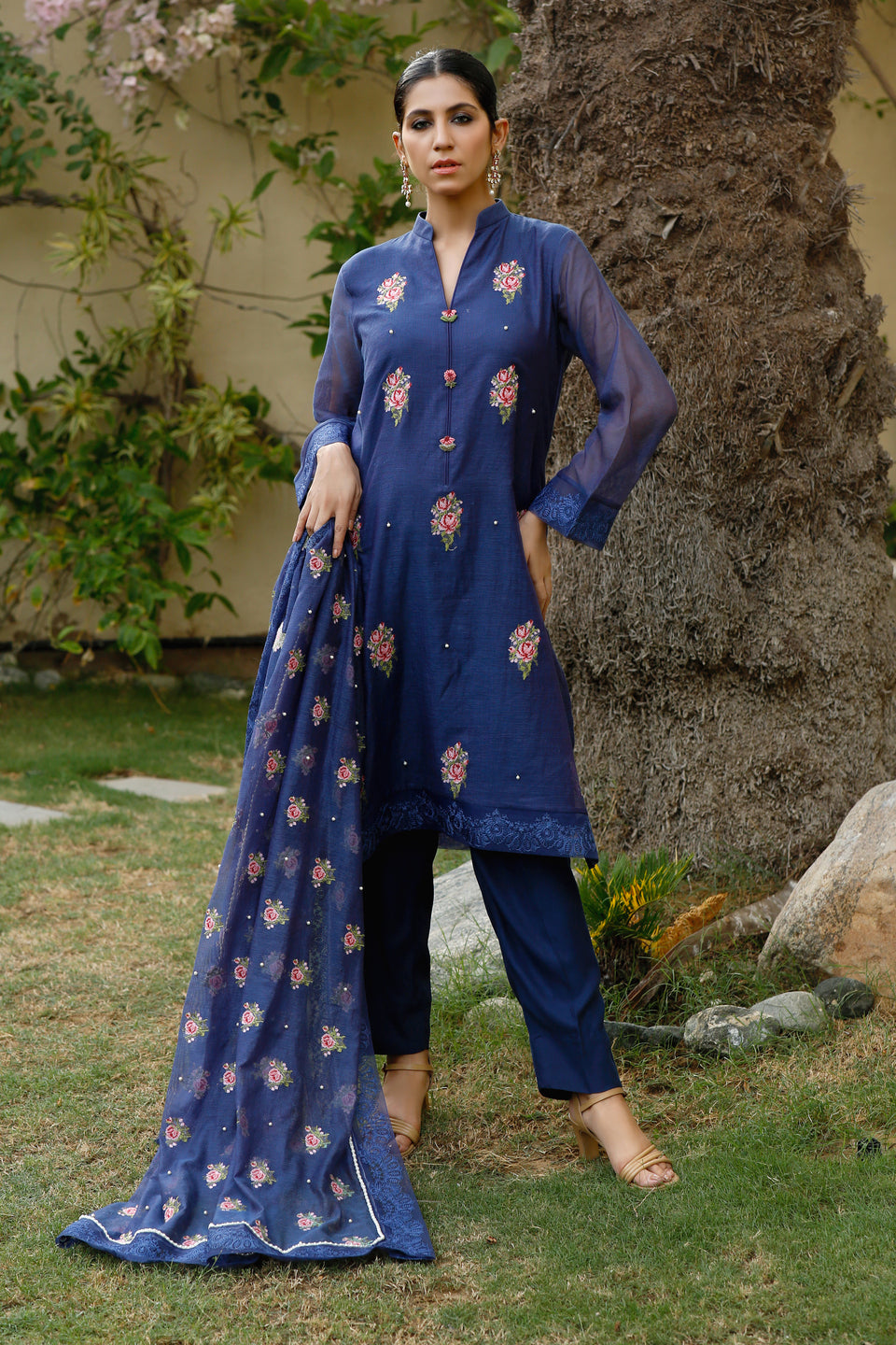 Cut from Khaddi net, the Absolute Rose+ kurti features multicolour cross stitch motifs with a delicately embroidered border on the daman & sleeves with pearl chan & hand-made buttons, making it a versatile classic for your new season wardrobe.