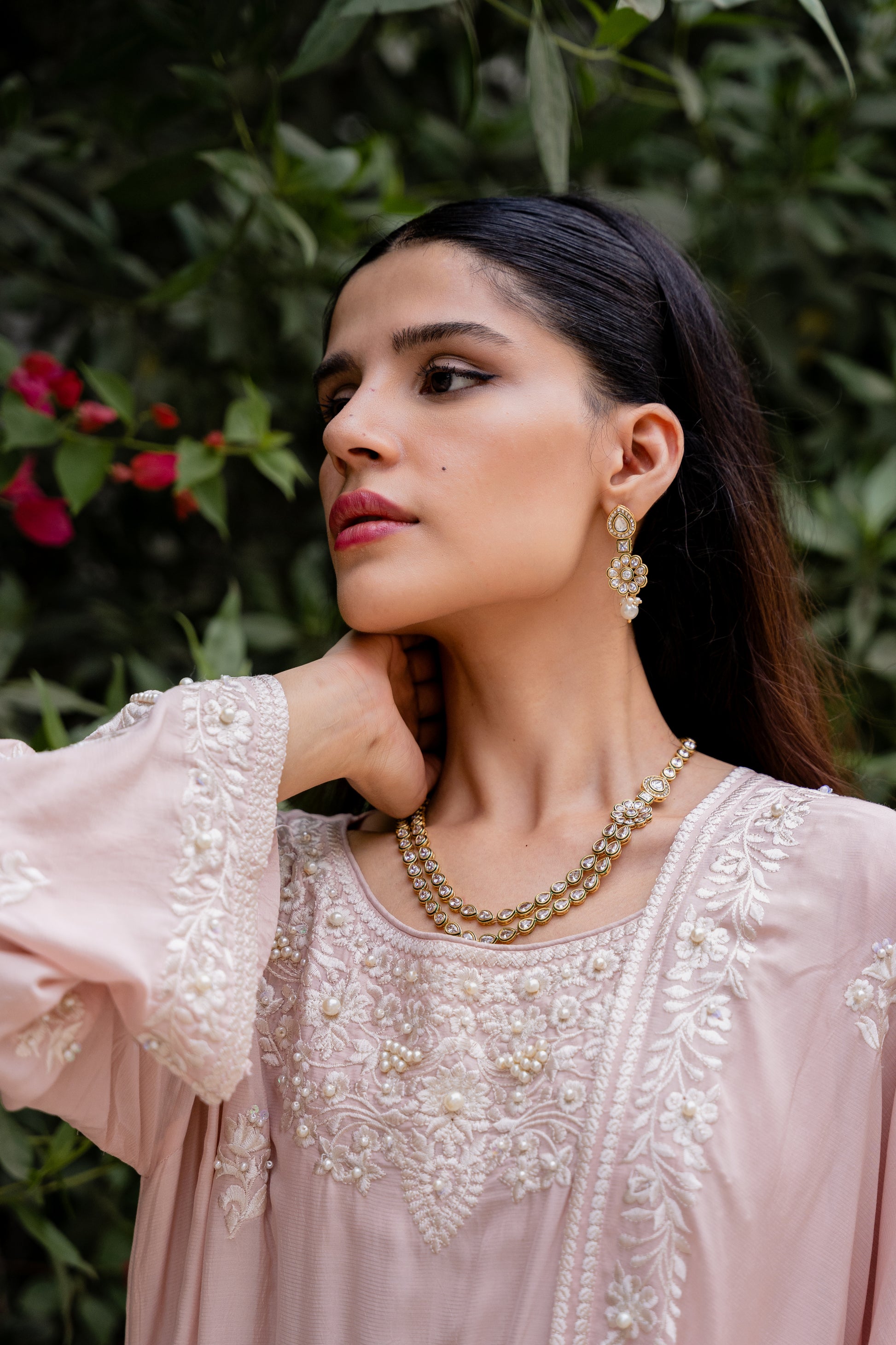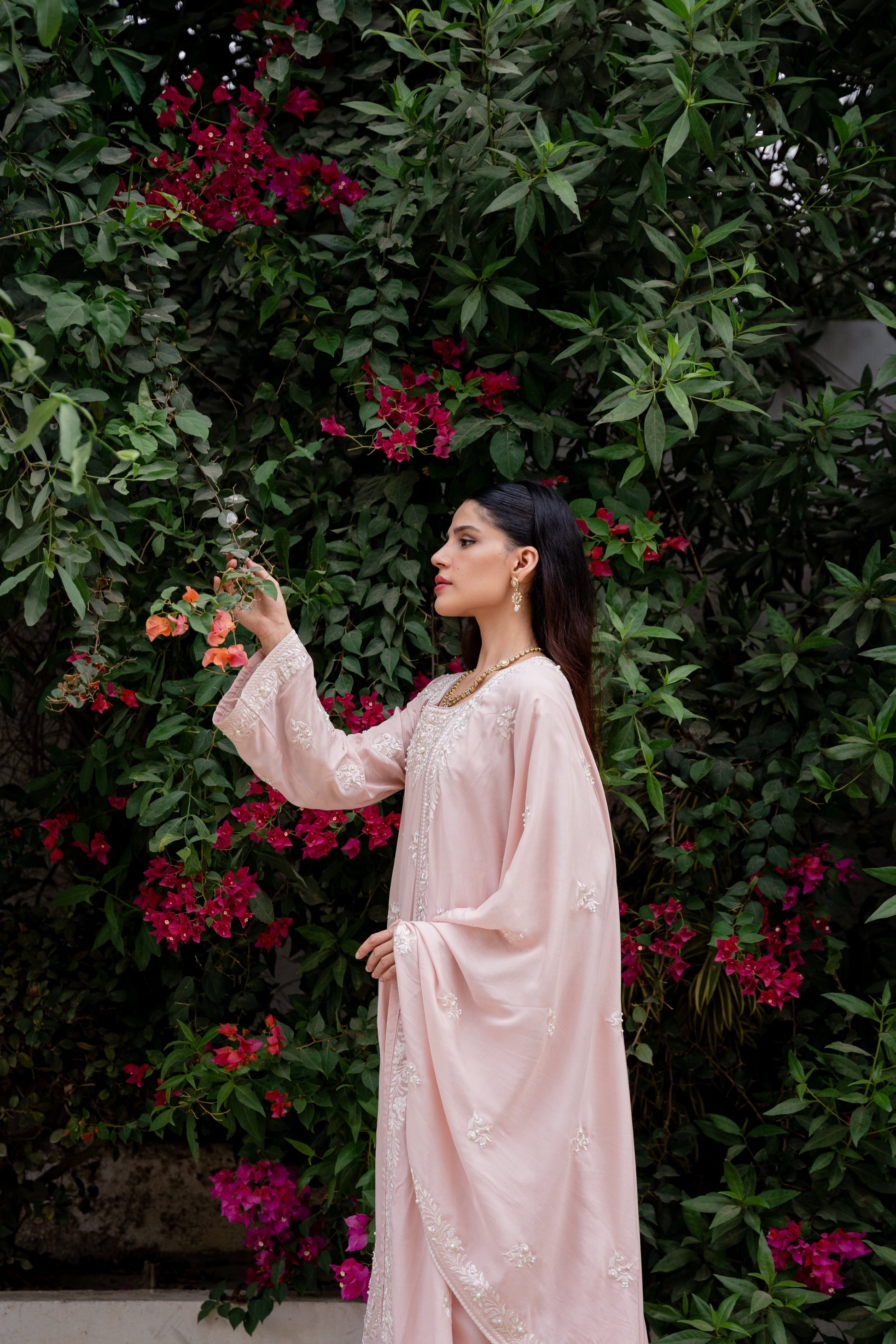Crafted from silk, the 2.75 yards matching dupatta features borders & motifs in ivory resham with handcrafted accents using pearls & sequins.