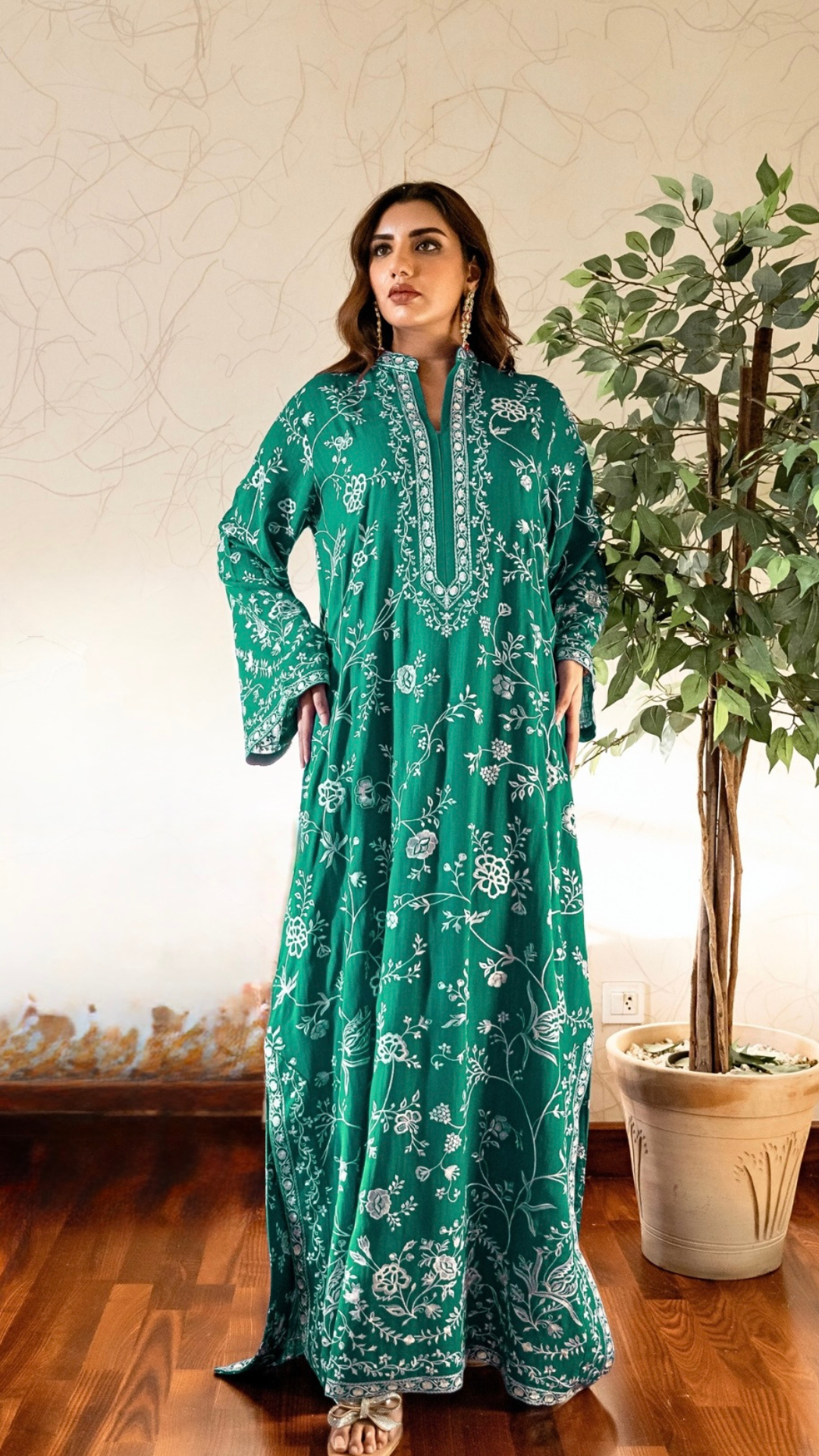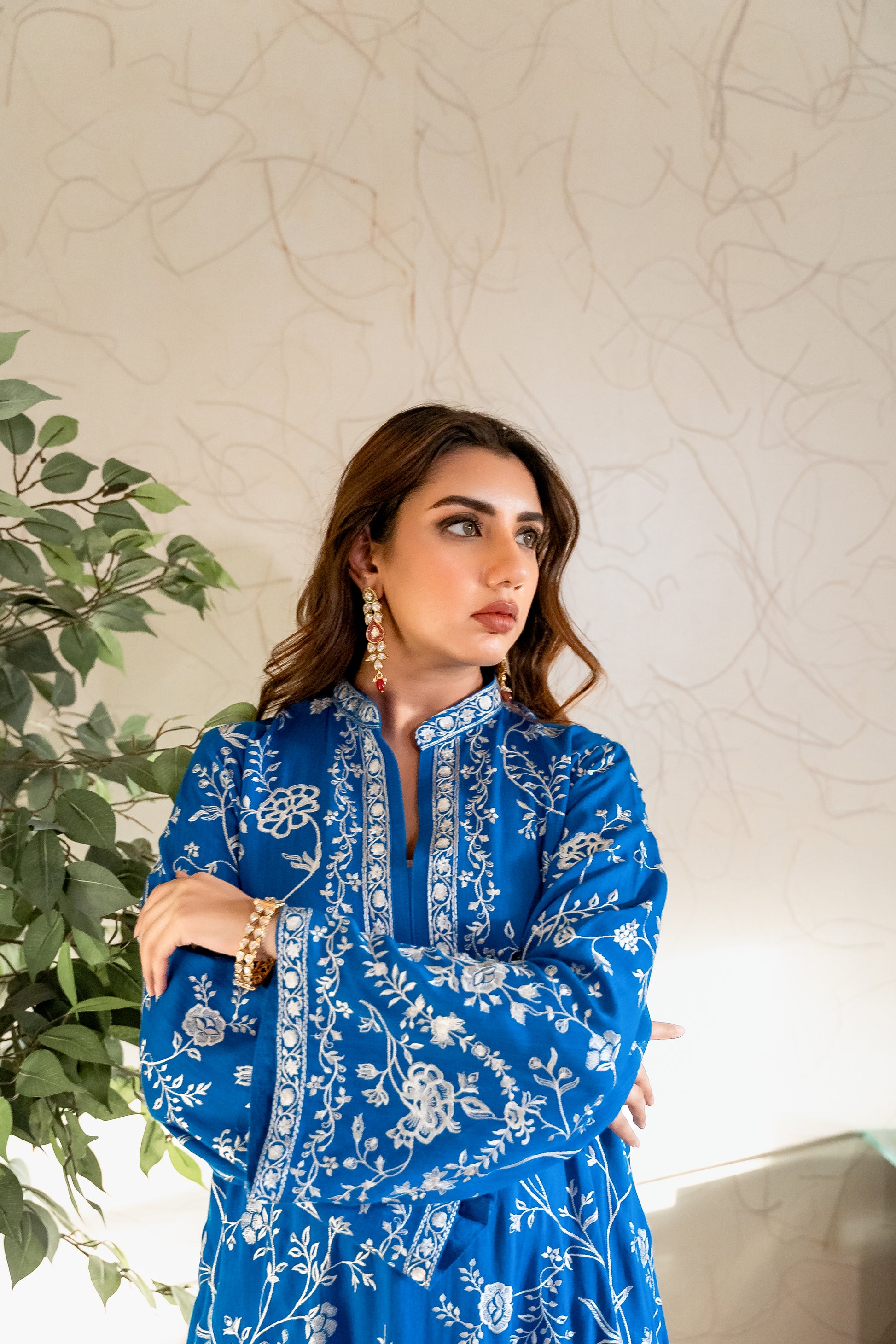 elevated with exquisite embroidery on the front, back, and sleeves.