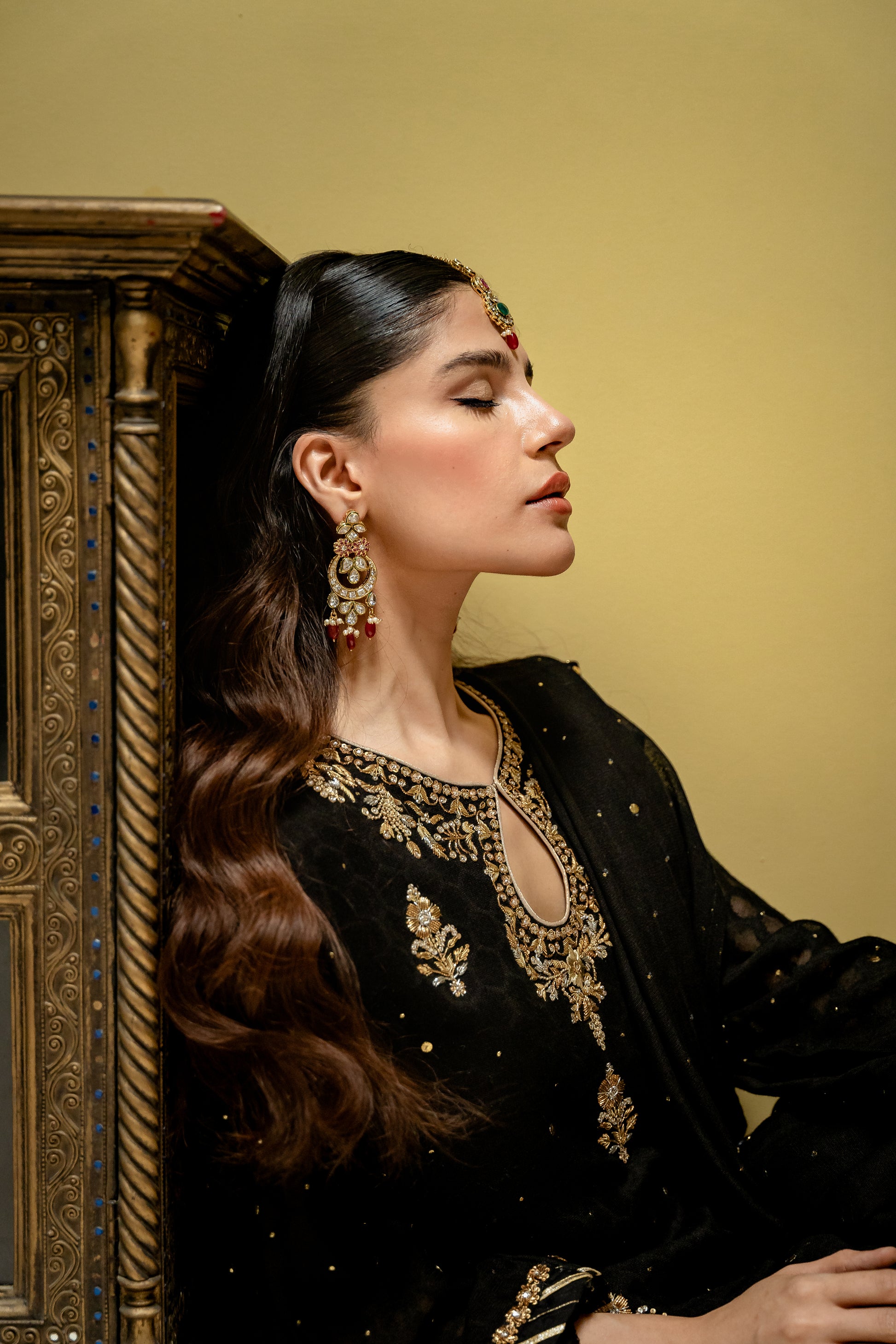 Paired with matching silk ejaar & a beautifully worked pure khaddi net