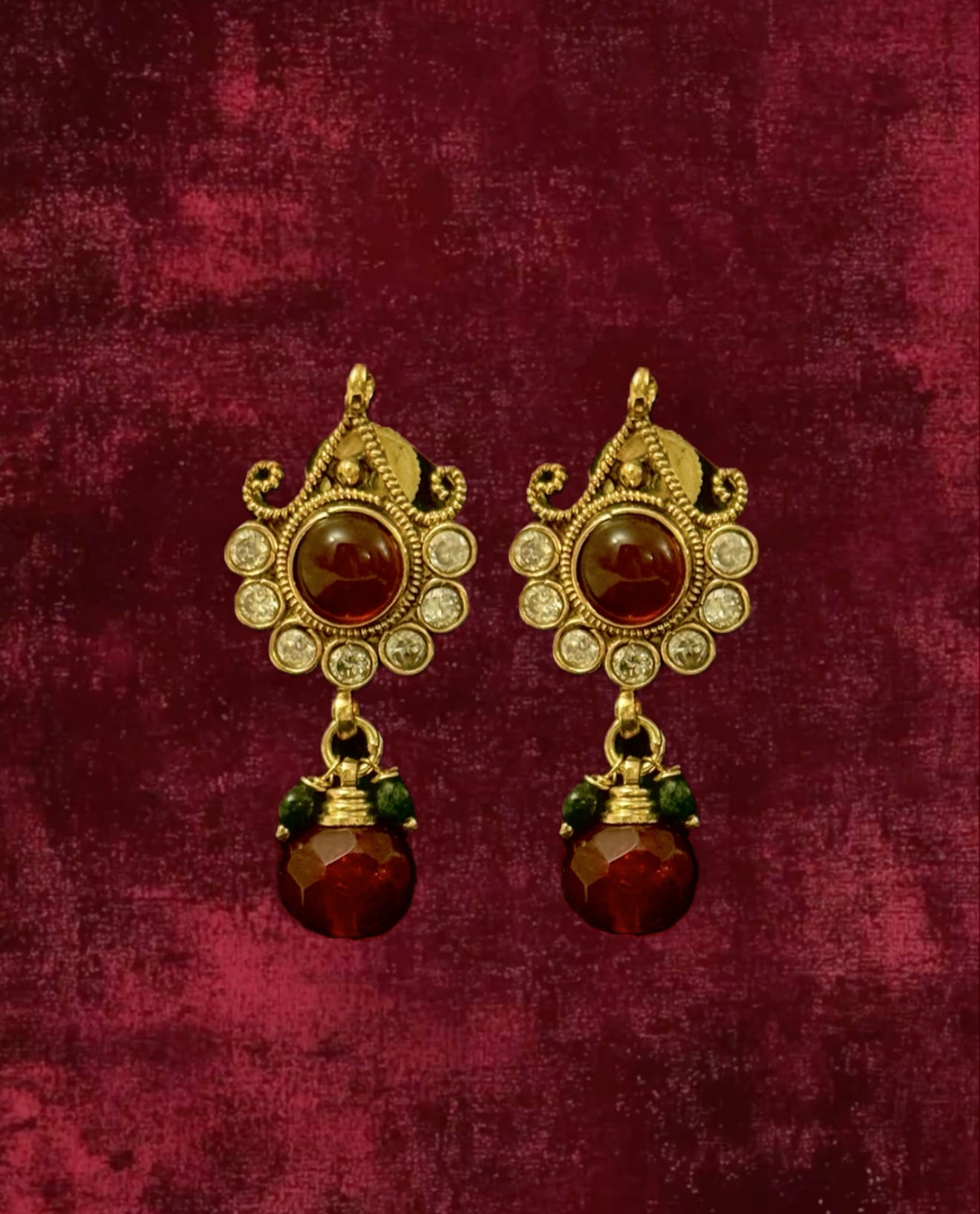 Expertly crafted using a blend of brass and copper alloy, these Parla Tops feature a stunning gold polish and vibrant semi precious amethyst stones. Their unique Polki design adds a touch of elegance to any outfit. Limited quantities available, get yours now! Keep them safe from moisture and fragrances by storing them in a sealed bag. Delivery time is approximately 1-2 days for Karachi and 3-5 days for other cities.