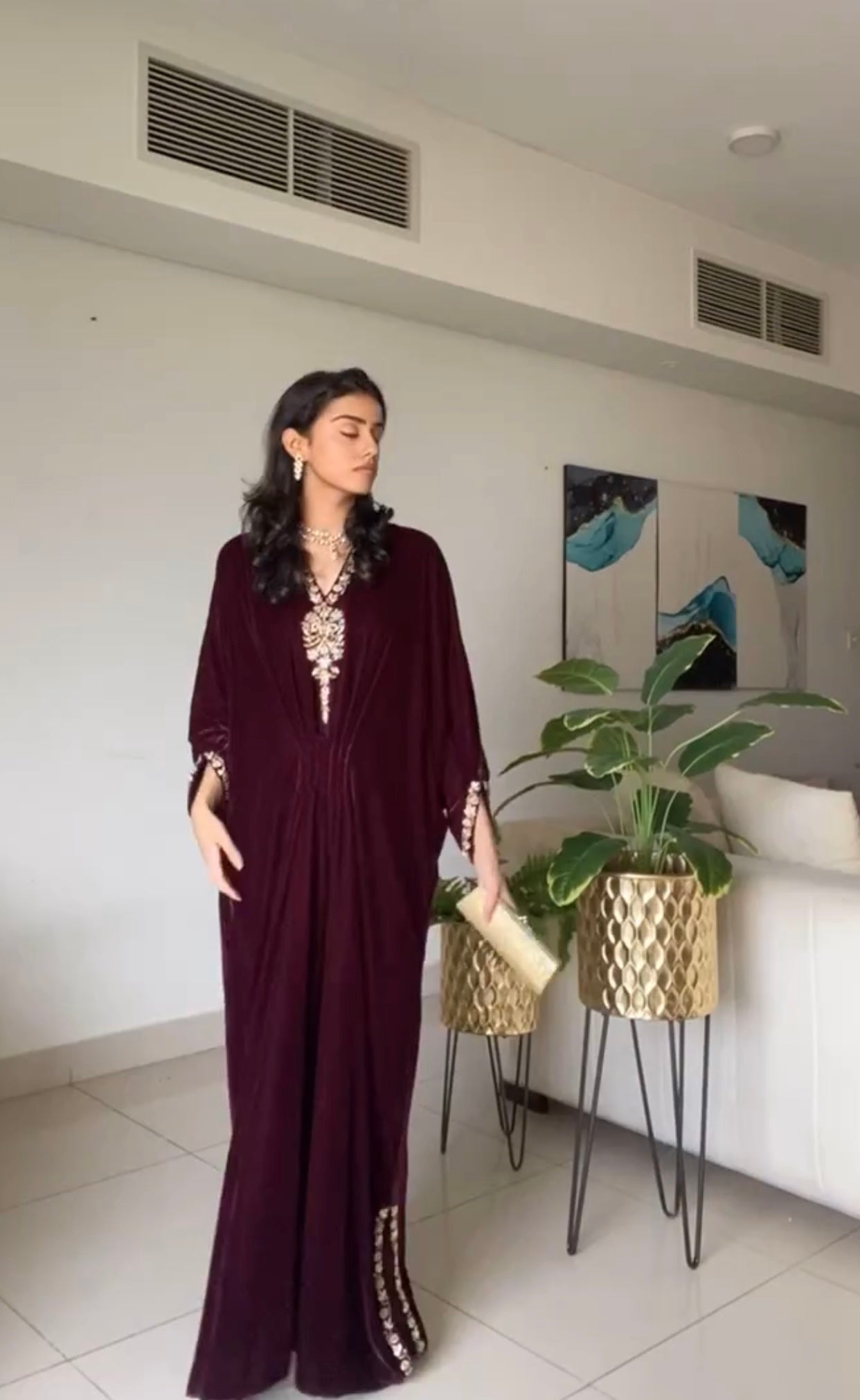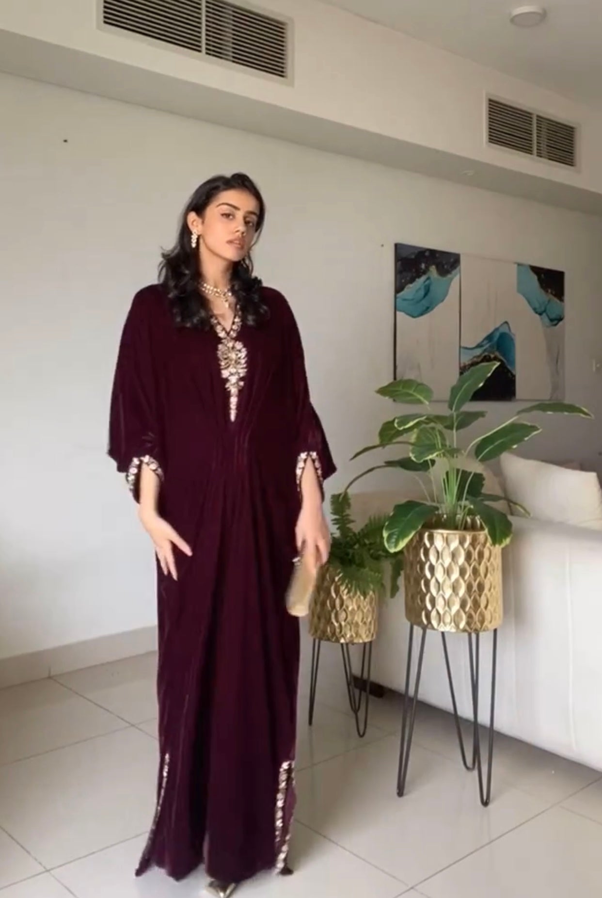 cut from fine velvet, the piece is delicately hand-embroidered in jewels & zardozi