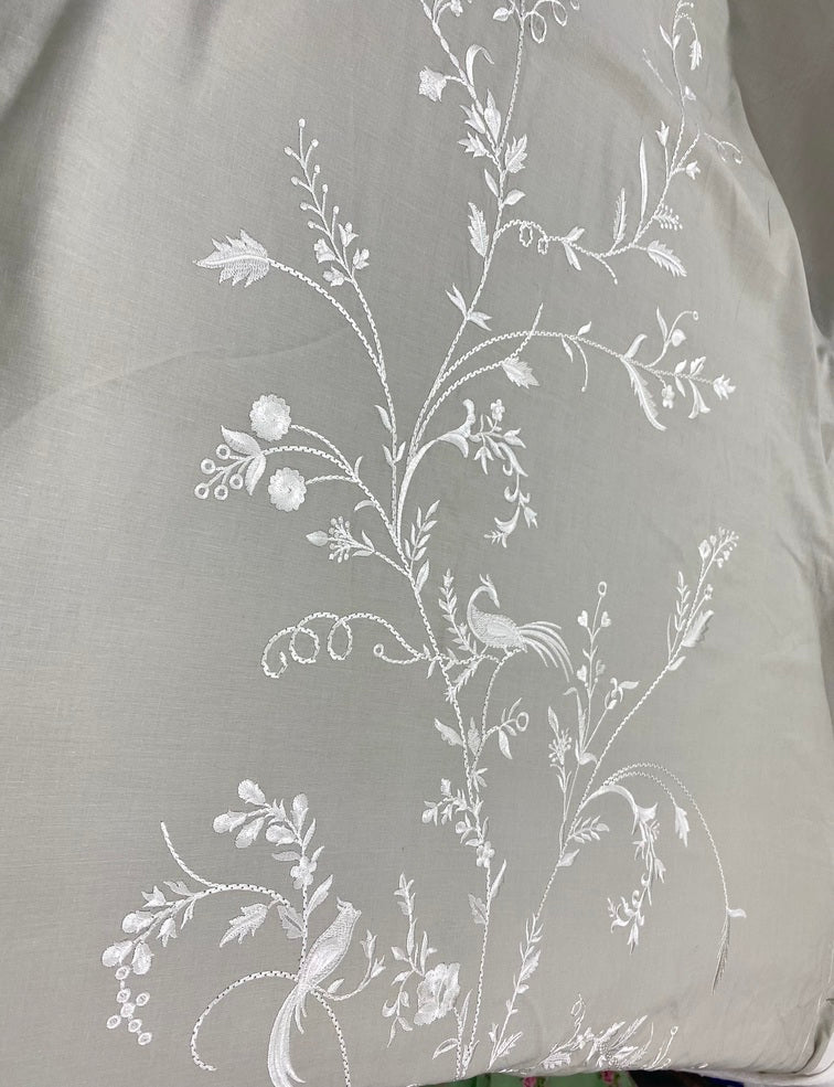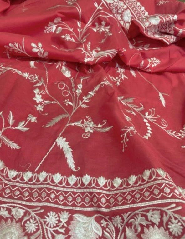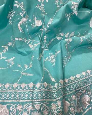 Brighten up your wardrobe with our bestselling Zahra Kurti. Featuring fine embroidery in ivory silk thread on an elaborate jaal with flowers, spirals and birds. It is the perfect addition to your wardrobe and a piece you will cherish for years to come.